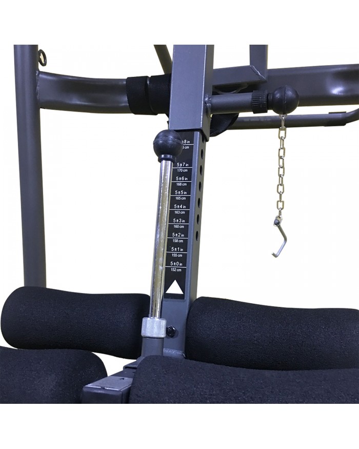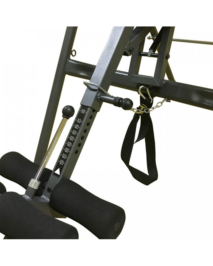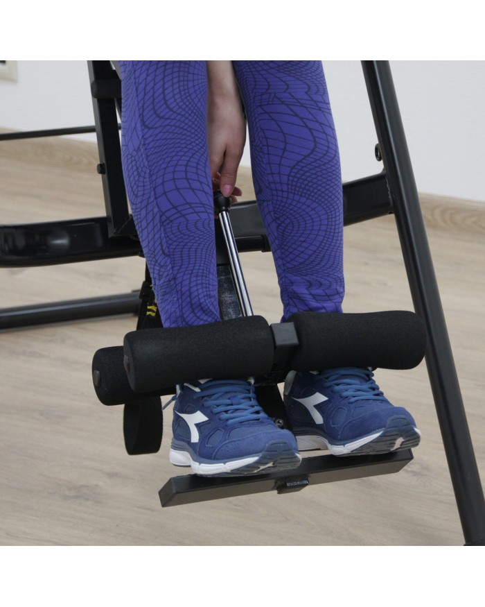 На данной модели инверсионного стола предусмотрен выбор режима инверсии (с помощью ремня и стержня) - легкий (угол до 22 гр), средний (угол от 22 до 55 гр), профессиональный (от 55 гр).