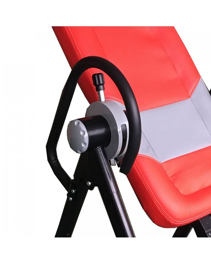 Инверсионный стол для домашнего применения. Новый цвет обивки - красный с серым.