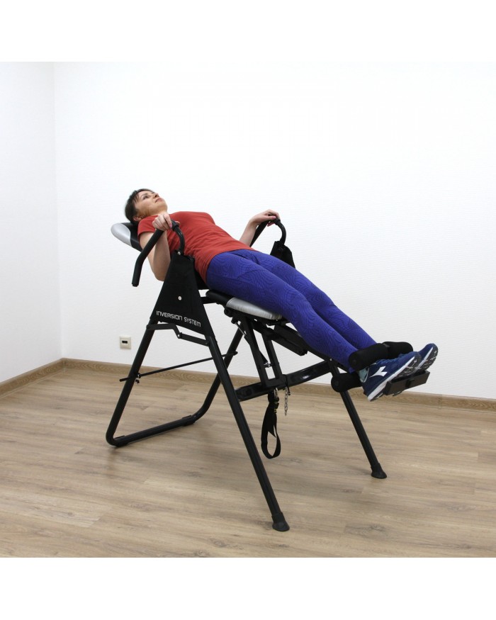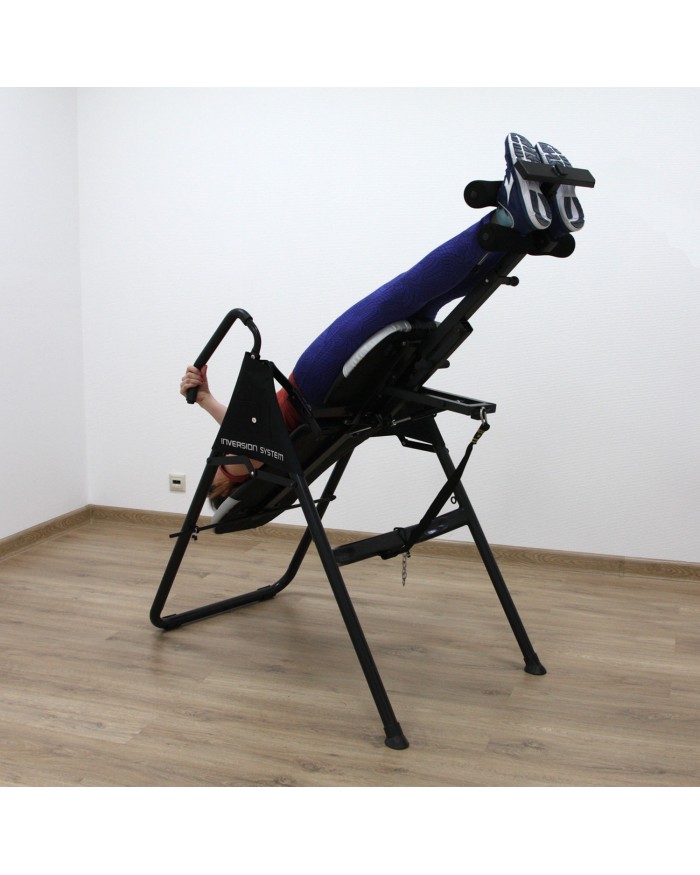 На данной модели инверсионного стола предусмотрен выбор режима инверсии (с помощью ремня и стержня) - легкий (угол до 22 гр), средний (угол от 22 до 55 гр), профессиональный (от 55 гр).