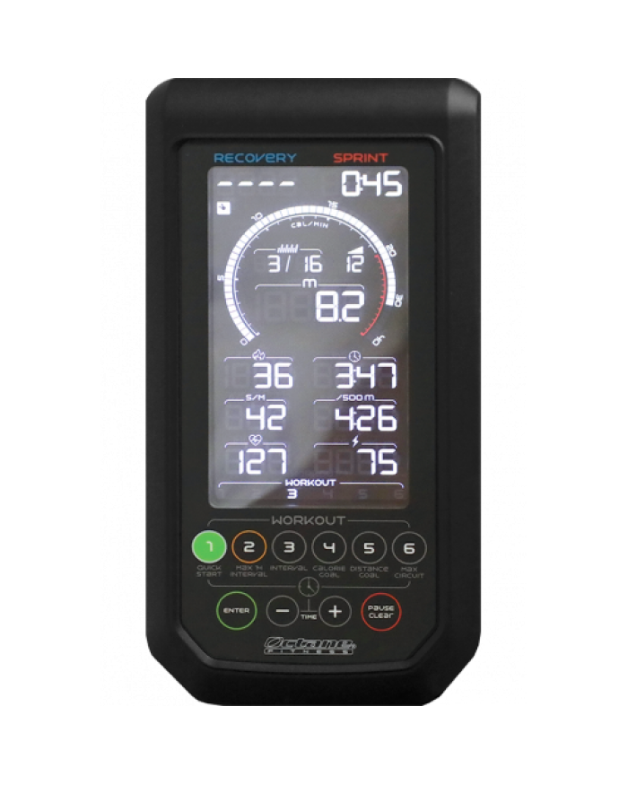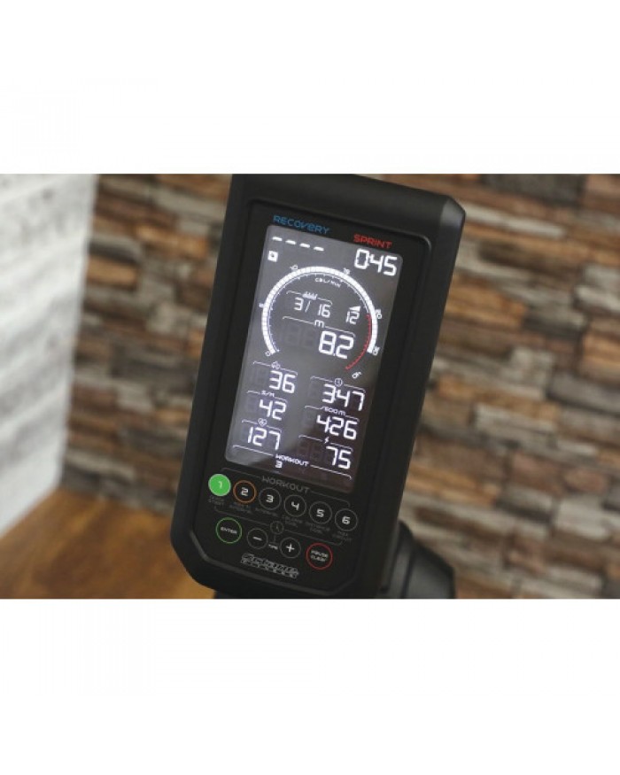 7-дюймовая ЖК-консоль большого размера оснащена динамическим измерителем калорий, который одновременно показывает ваш лучший и текущий результат в качестве стимула для стремления улучшить его в течении всей тренировки. Показатели выводятся в режиме реального времени, количество гребков в минуту, ватты, расстояние, время, калории и частоту сердечных сокращений, а также мотивацию.