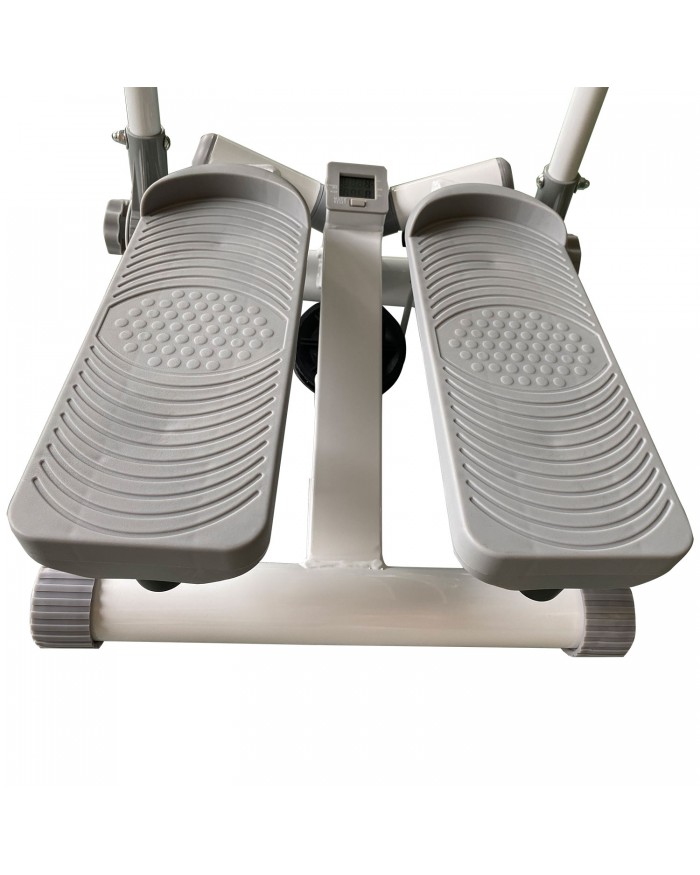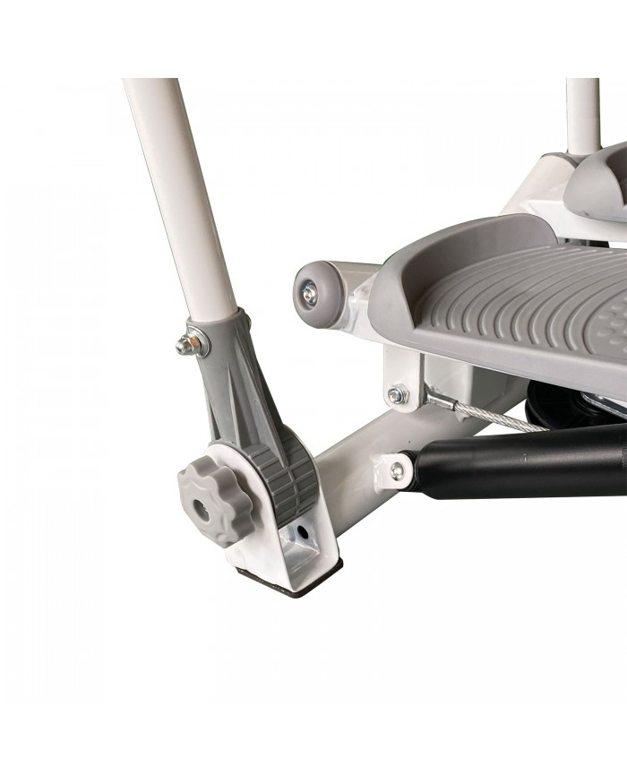 Поворотный мини-степпер c поручнями прорабатывает и тонизирует ягодицы и мышцы ног, снижая давление на кости и суставы.