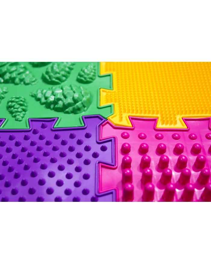 Служит для жёсткой стимуляции подошвенных мышц, улучшения кровообращения в стопе и нижних конечностях, снимает отёчность ног. Рекомендовано использовать детям старшего дошкольного (6-7 лет), школьного возраста и взрослым. Размер пазла 25 на 25 см, с возможностью крепления с другими видами массажных поверхностей.