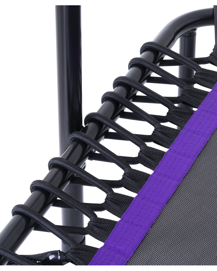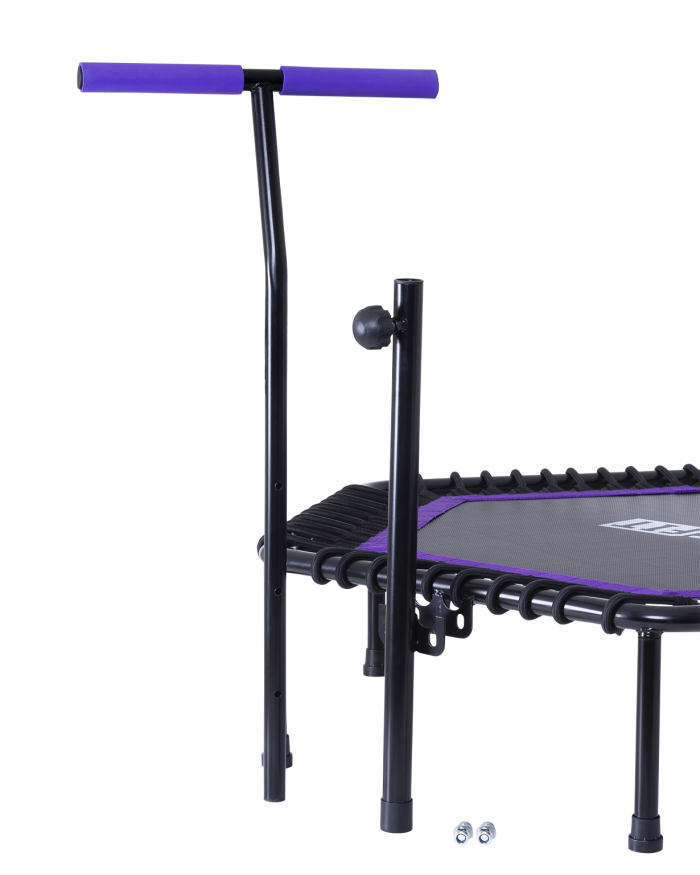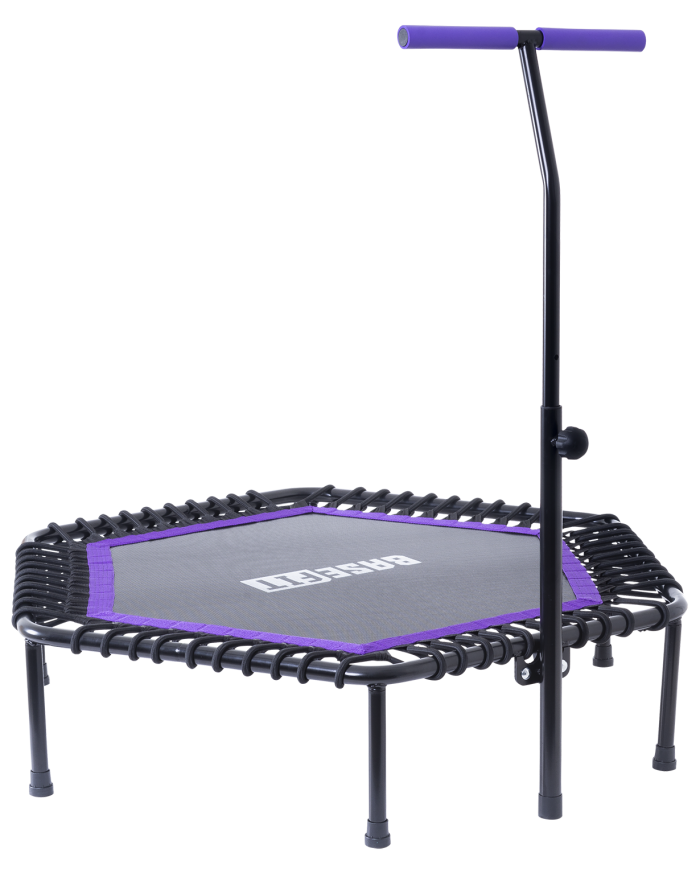 Модель TR-401 - одна из последних разработок в области батутов. Батут имеет увеличенный срок службы благодаря замене пружинной системы крепления эластичными высококачественными резинками. Прыжки на таком батуте практически бесшумны в отличие от прыжков на пружинных батутах. Основа батута в форме шестиугольника, изготовленная из высококачественного полипропилена, обеспечивает стабильный и высокий отскок. В комплект входит съемный держатель, который можно настраивать под любой рост благодаря трехуровневой регулировке высоты (75/87/99 см). Поручни, покрытые вспененным ПВХ, защищающим держатель от коррозии, обеспечивают повышенный баланс, гибкость и координацию во время тренировок. Держатель также гарантирует безопасность ребенка при прыжках.