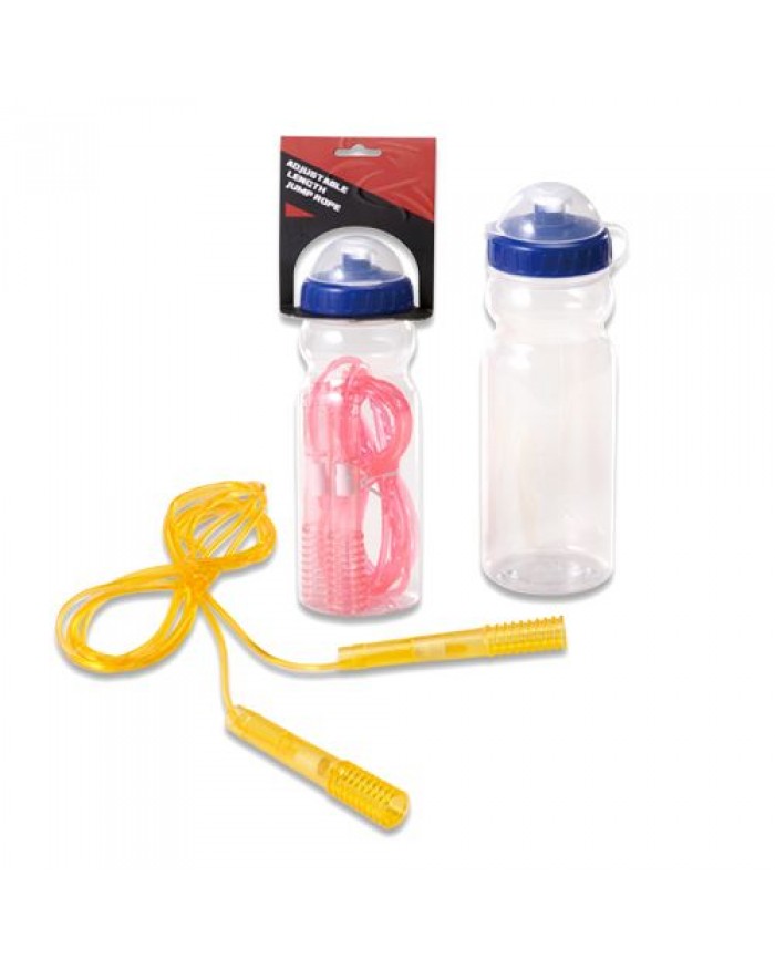 Удобные ручки анатомической формы позволят легко развивать скорость во время тренировки, при минимальных усилиях, а бутылочка для воды обязательно пригодится при тренировках в зале или на открытом в воздухе. Длина скакалки — 3 м (есть возможность регулировки по длине).