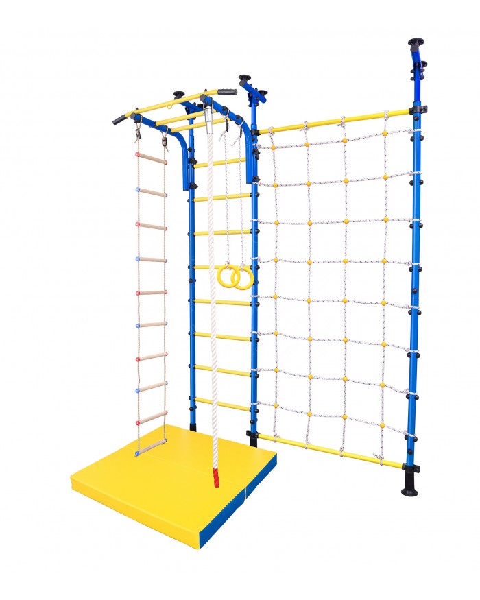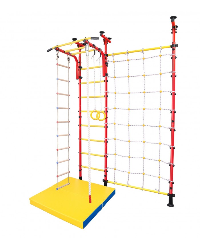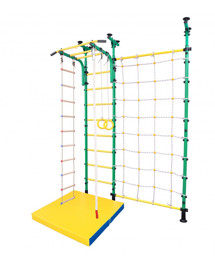 Шведская стенка с крепким турником даёт возможность получить ребёнку необходимую нагрузку, верёвочная лестница прекрасно развивает его гибкость и координацию, гимнастические кольца способствуют развитию мышц рук, а прочный канат и трапеция позволят малышу выполнять самые разнообразные гимнастические трюки.