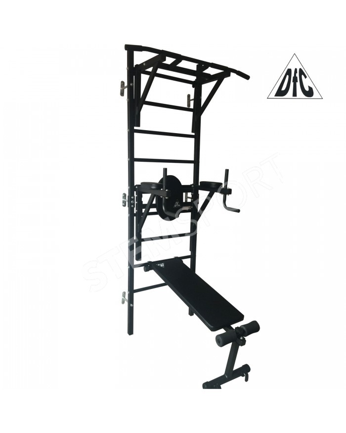 На шведской стенке DFC VT-7006 можно выполнять подтягивания тремя хватами, упражнения на брусьях и на скамье с валиками.