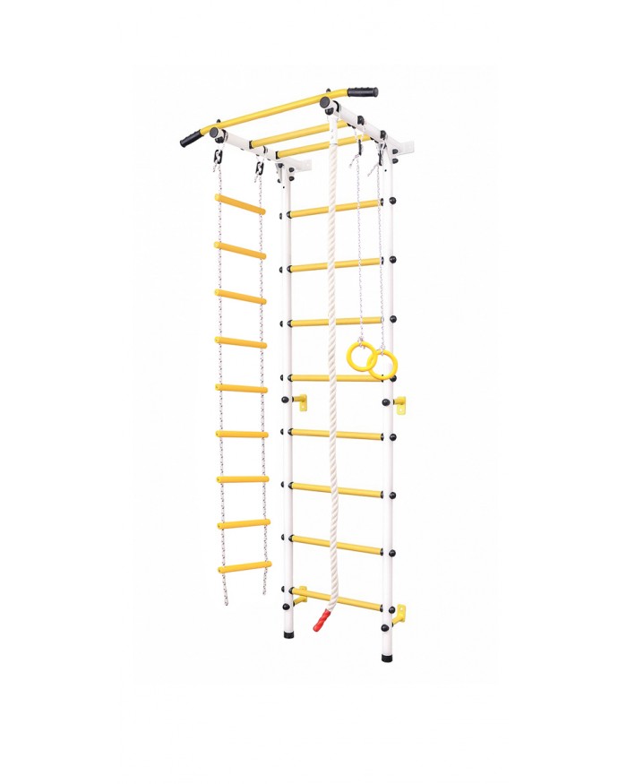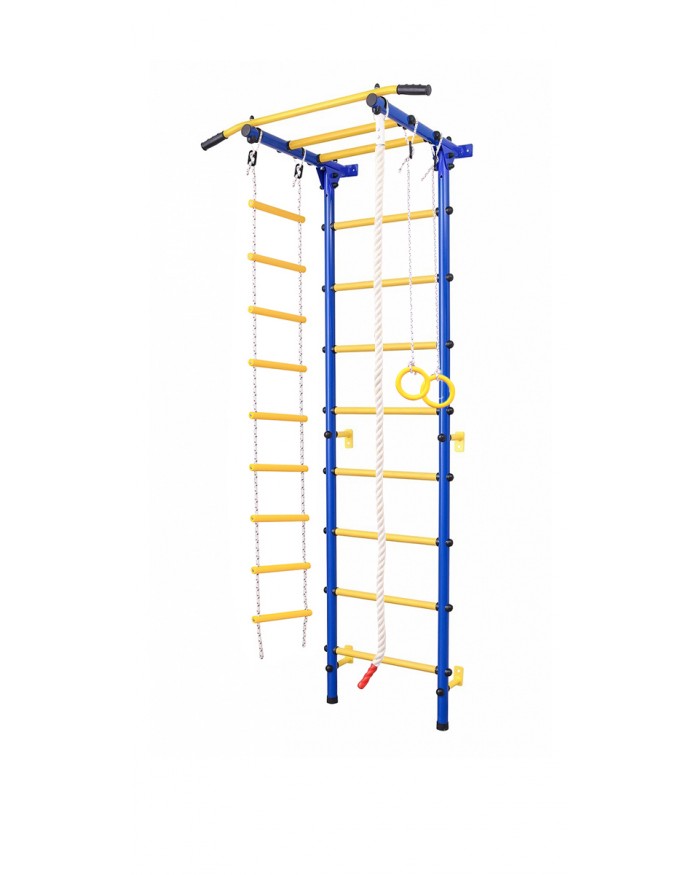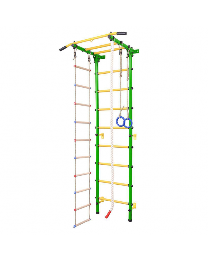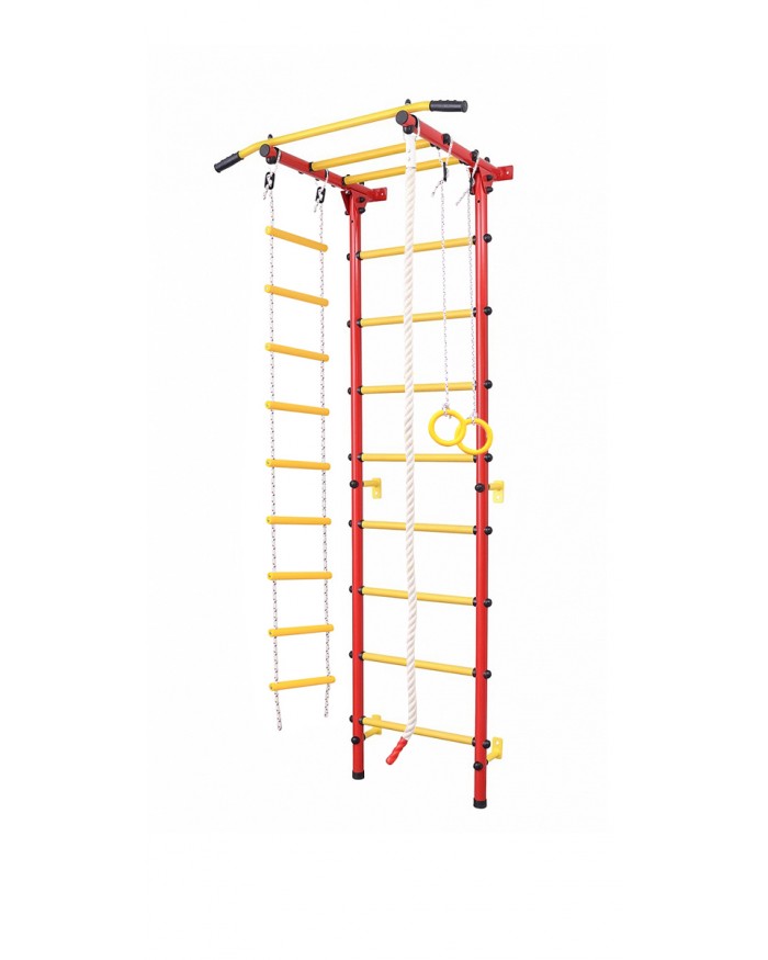 Шведская стенка с крепким турником даёт возможность получить ребёнку необходимую нагрузку, верёвочная лестница прекрасно развивает его гибкость и координацию, гимнастические кольца способствуют развитию мышц рук, а прочный канат и трапеция позволят малышу выполнять самые разнообразные гимнастические трюки.
