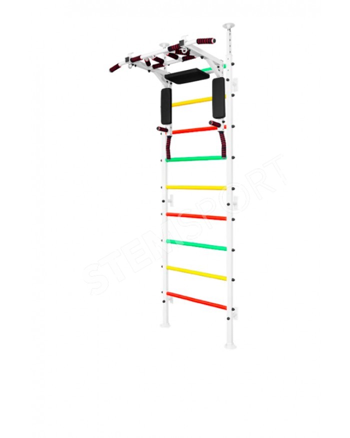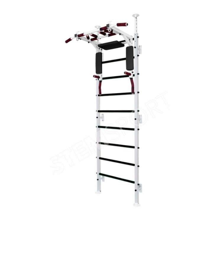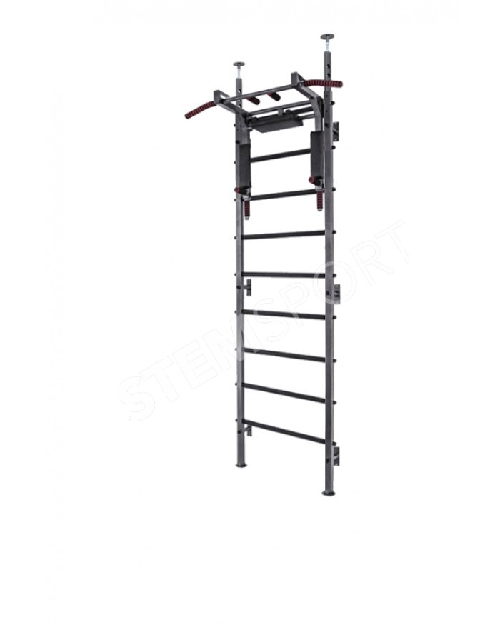 1) Шведская стенка "В распор" изготовлена из профиля 60*40 мм. Подойдет для не очень прочных стен в частных коттеджах, а также многоквартирных домах со стенами из гипсокартона. Стенка крепится в распор между потолком и полом. Так-же дополнительно, для большей надежности, ее можно закрепить и к стене. Благодаря этому, конструкция выдерживает нагрузки до 250 кг!