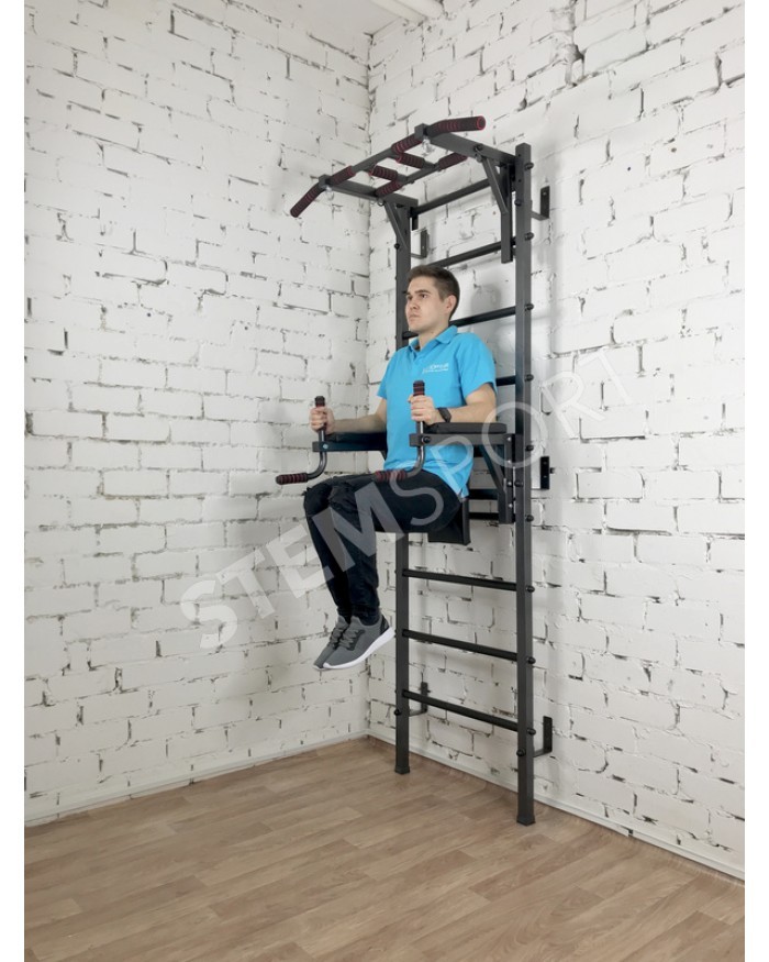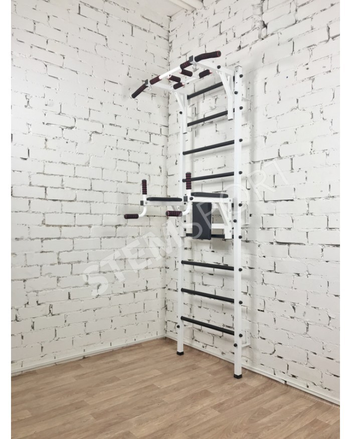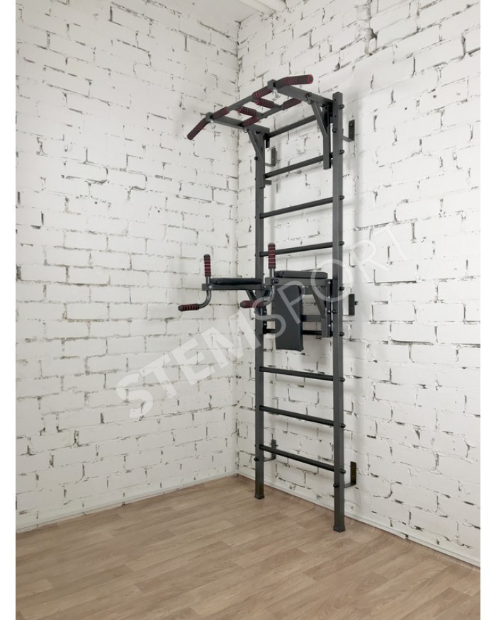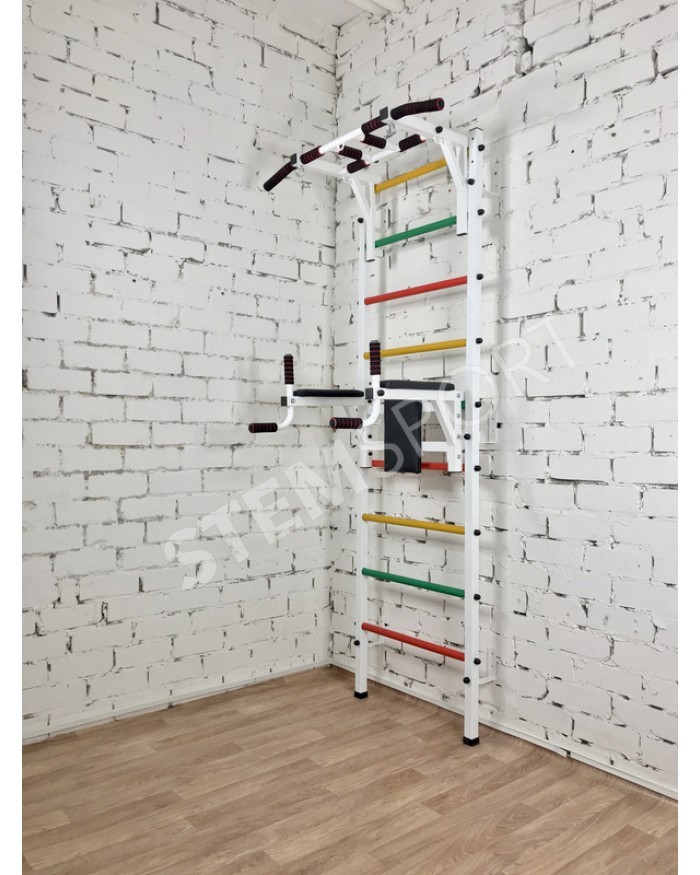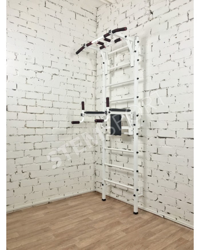 Это по сути спортивный конструктор, из которого Вы можете собрать спортзал своей мечты. Представляет собой она гимнастическую лестницу, турник 3 хвата и брусья-пресс.