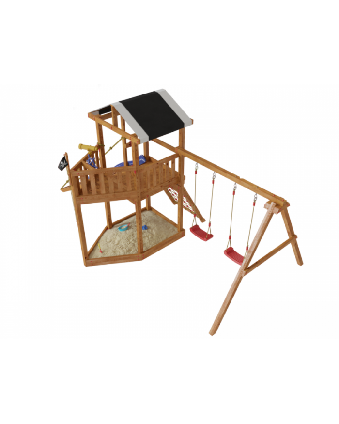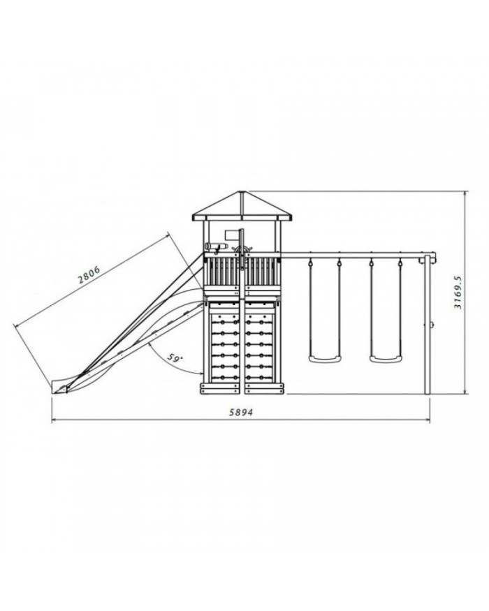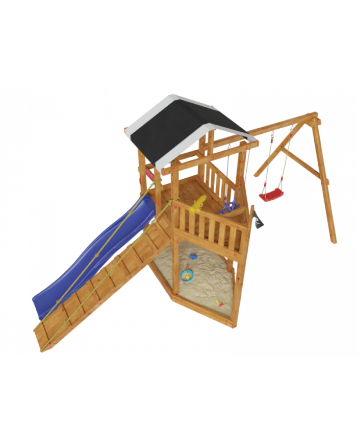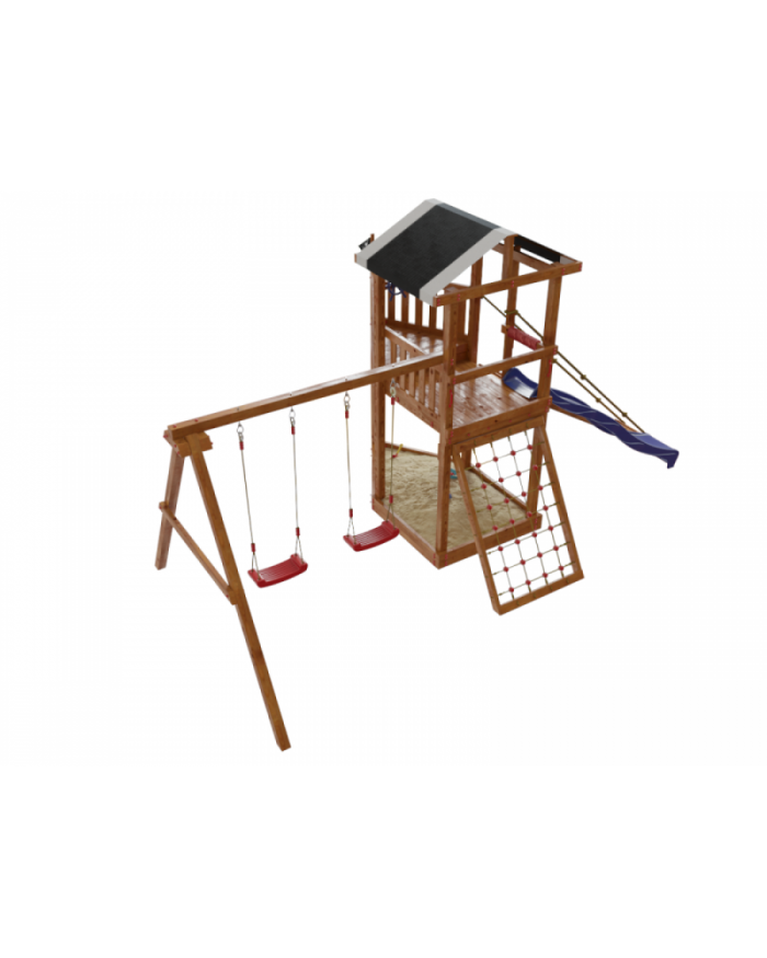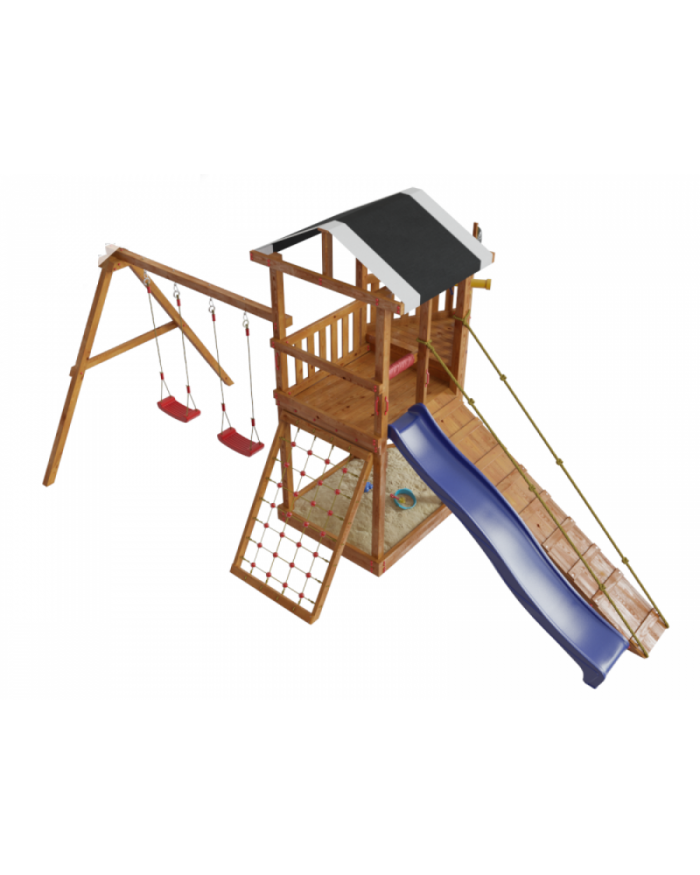 Товар поставляется в разобранном виде. В комплект для самостоятельной сборки входит подробная инструкция по сборке товара. Товар упакован в гофрокартонные короба в количестве: 11 мест + горка. Установка детской игровой площадки проводится на ровной поверхности, свободной от насаждений. Размер площадки не менее 5,8м х 7,1м. Рекомендуем зафиксировать конструкцию используя анкера любой формы.