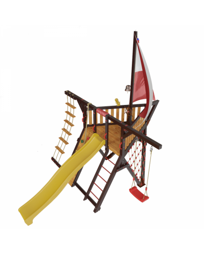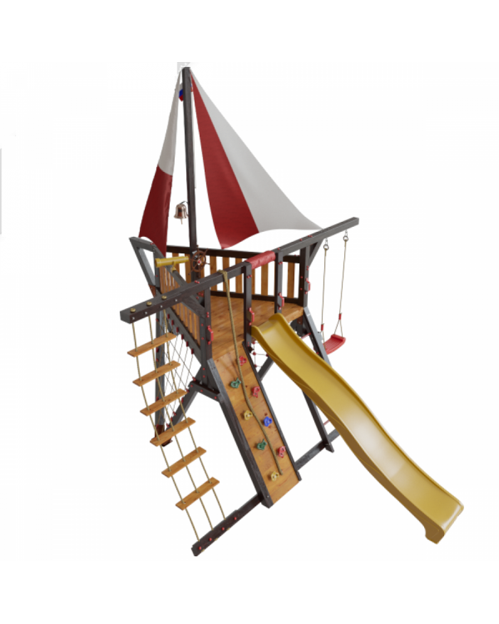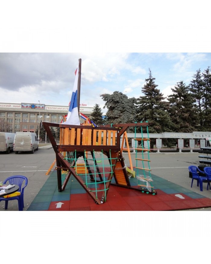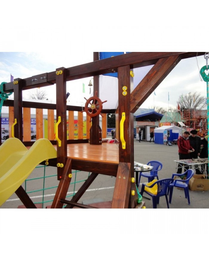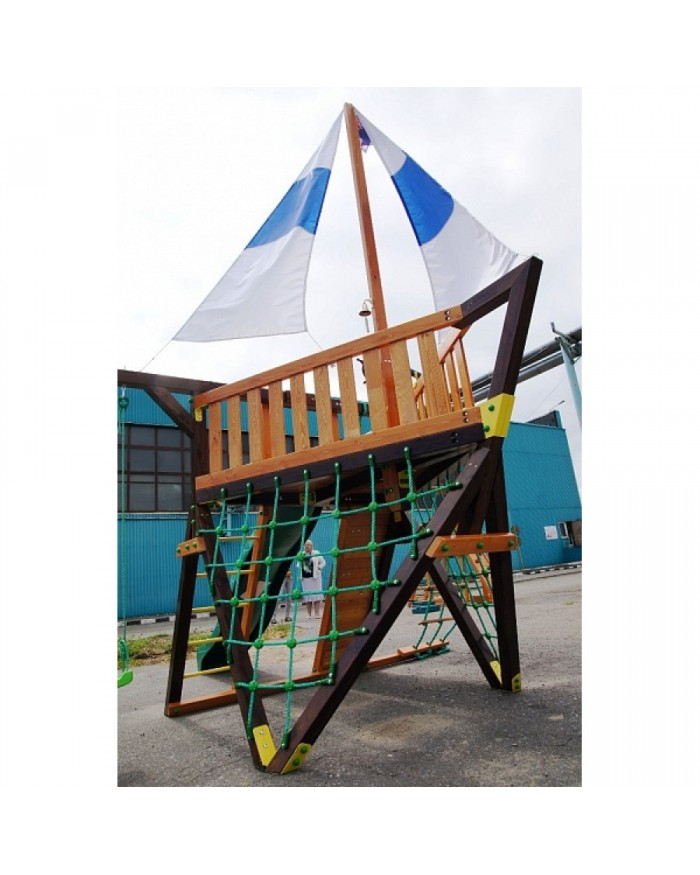 Детская игровая деревянная площадка-корабль «Фортуна» для дач и частных домовладений предназначена для детей от 4 до 9 лет, создает условия, обеспечивающие физическое развитие ребенка, развивающие координацию движений, преодоление страха высоты, ловкость и смелость, чувство коллективизма в массовых играх.