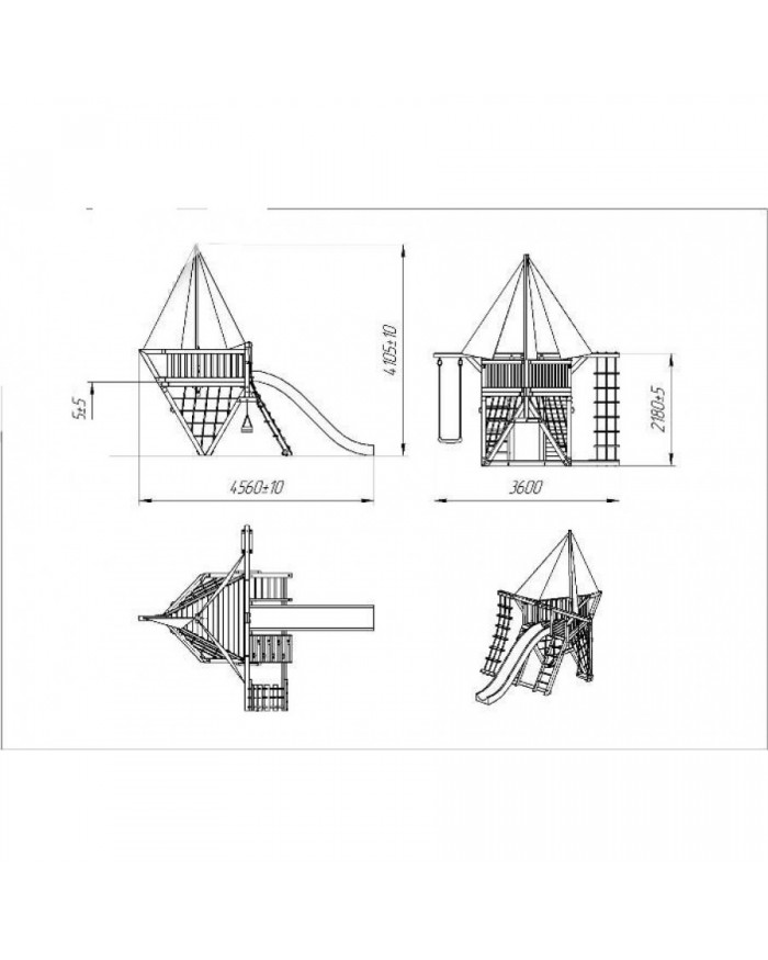 Товар поставляется в разобранном виде. В комплект для самостоятельной сборки входит подробная инструкция по сборке товара. Товар упакован в гофрокартонные короба в количестве: 10 мест + горка. Установка детской игровой площадки проводится на ровной поверхности, свободной от насаждений. Размер площадки не менее 8м х 9м. Рекомендуем зафиксировать конструкцию путем бетонирования, используя анкера (входят в комплект).