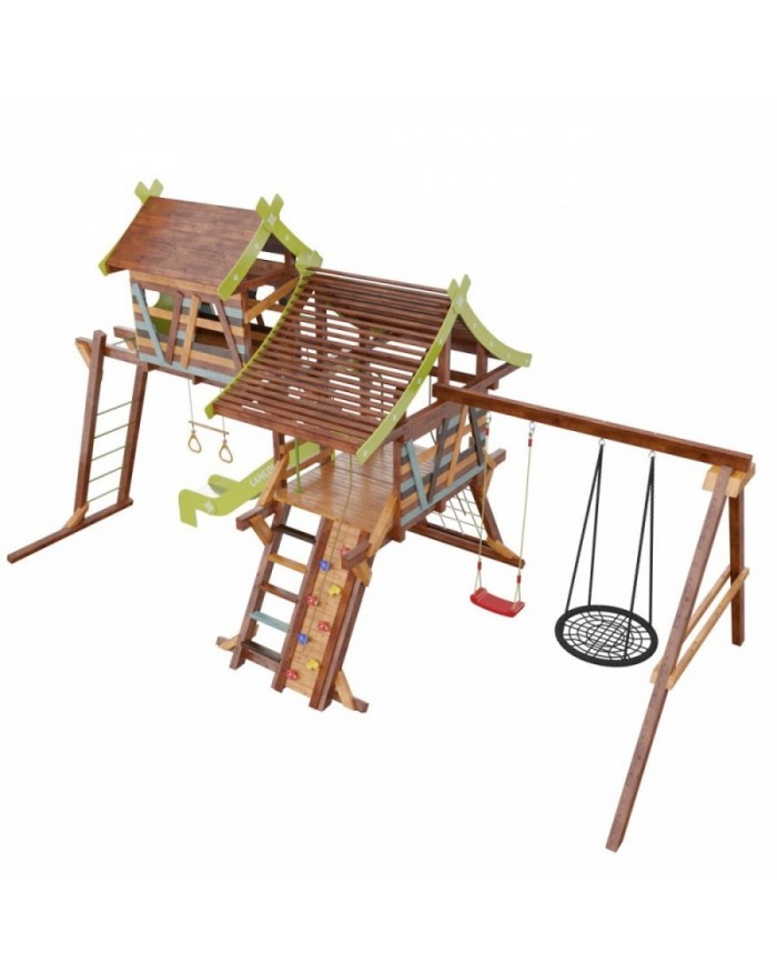 Детские игровые деревянные площадки для дачи серии Хижина предназначены для детей от 4 до 12 лет, и создают условия, обеспечивающие физическое развитие ребенка, развивающие координацию движений, преодоление страха высоты, ловкость и смелость, чувство коллективизма в массовых играх.