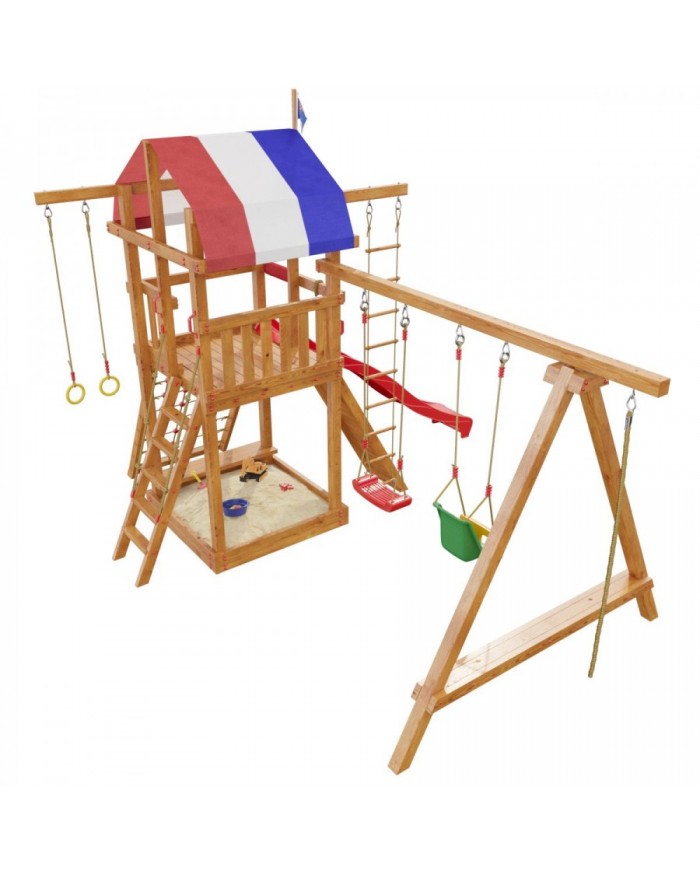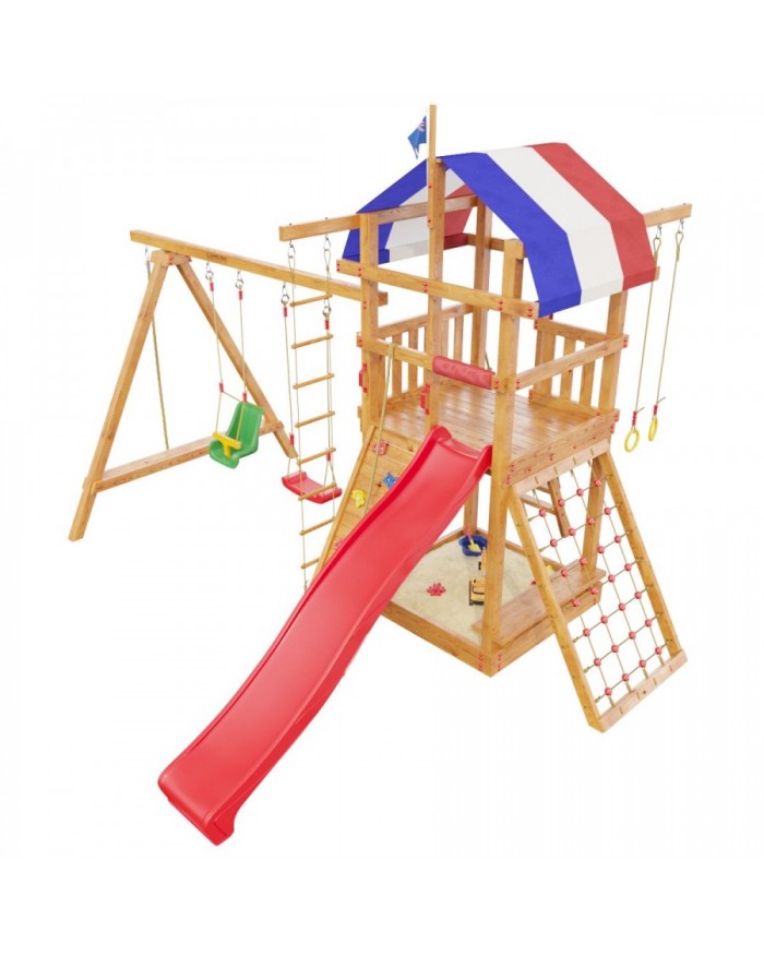 Детская игровая деревянная площадка для дач и частных домовладений предназначена для детей от 4 до 9 лет, создает условия, обеспечивающие физическое развитие ребенка, развивающие координацию движений, преодоление страха высоты, ловкость и смелость, чувство коллективизма в массовых играх.