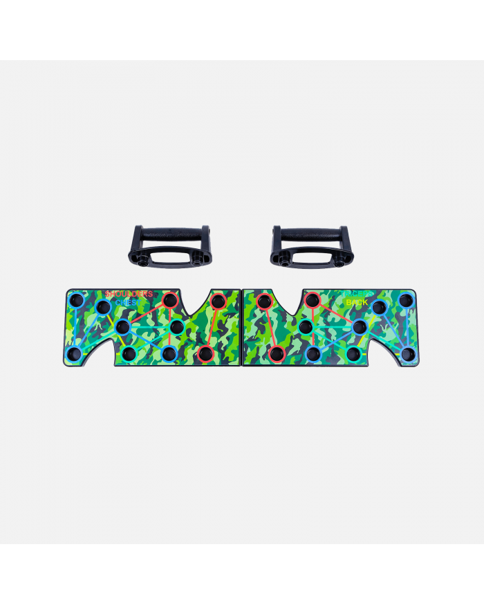 Спортивная доска с упорами для отжиманий, размеченная по специальной системе упражнений на различные группы мышц и зон торса - плечи, спину, руки, грудь. Она выдерживает интенсивные ежедневные нагрузки и создана для регулярных упражнений, выдерживает до 150 кг. Переставляя упоры для рук в разные пазы на доске, Вы получите упражнения на разные группы мышц.