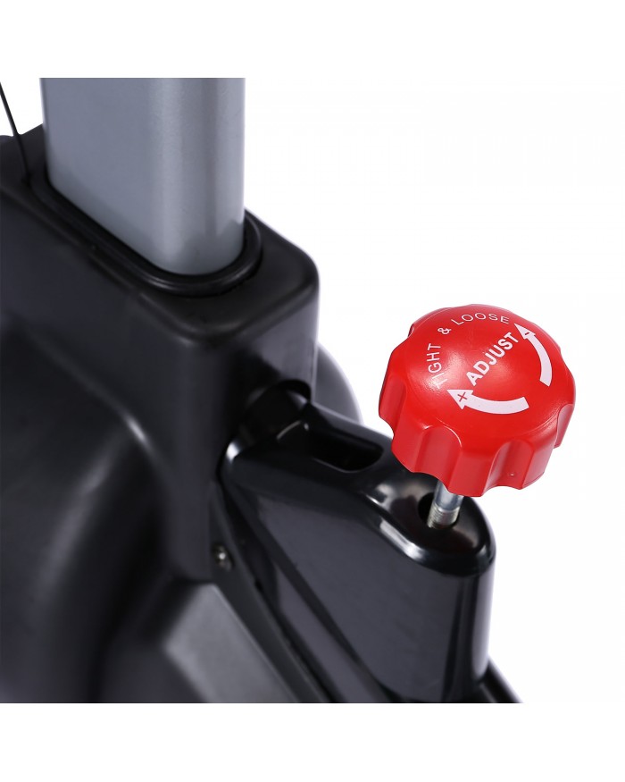 Вертикальный механический спин-байк с ременным типом привода и колодочной системой нагружения.