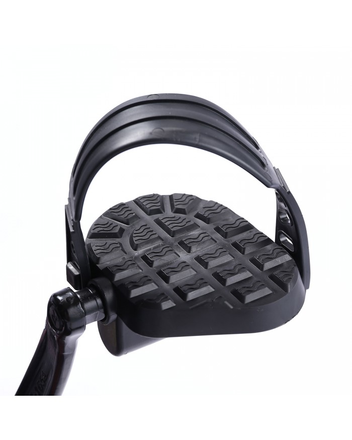 Фиксация ног в педалях с помощью резиновых ремней с регулировкой.