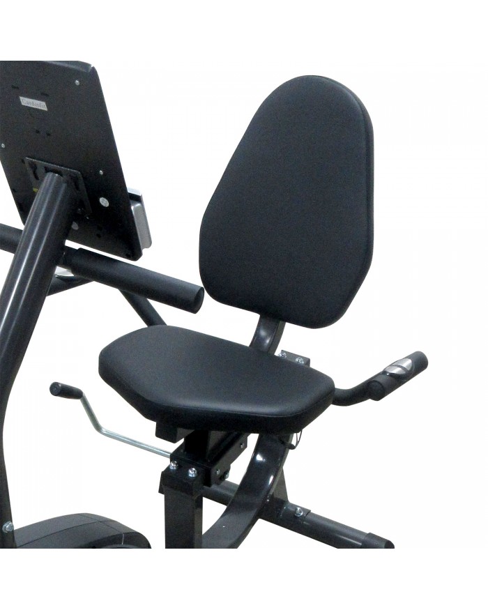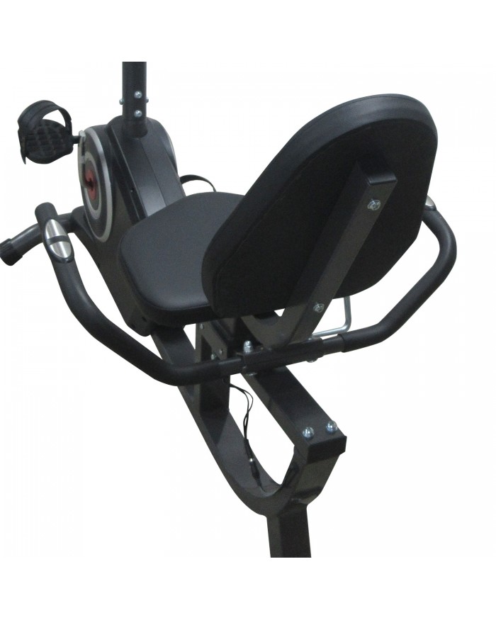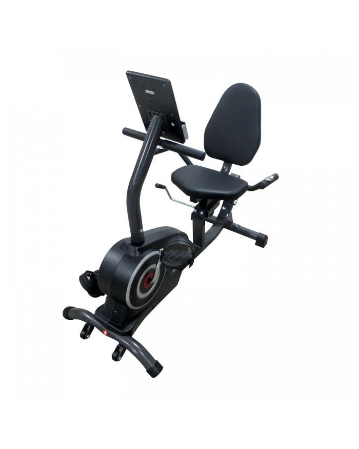 Велотренажер с удобной горизонтальной посадкой и бесшумной магнитной системой нагружения. Нагрузка имеет ручную регулировку с помощью ручки на стойке тренажера, 8 положений. Мягкое регулируемое сиденье с мягкой спинкой.